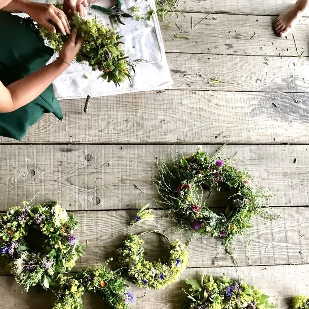 An diesem Nachmittag widmen wir uns den Kräutern, dem uralten Symbol des Kreises und einem wunderschönen Naturhandwerk- dem “Kranzen”. Wir ernten die zarten Kräuter und Blüten des Mittsommers.